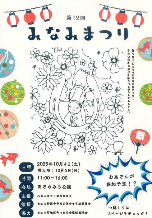 毎年恒例、「あきの道公園」で開催される「みなみまつり」が、今年でなんと12回目を迎えます!
