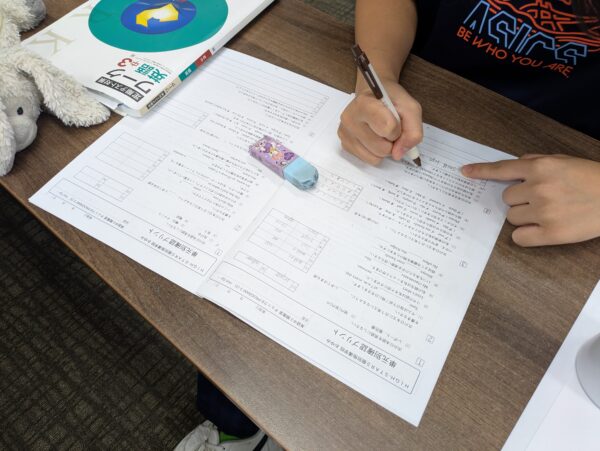 12時から17時までの5時間、集中してテスト範囲の対策プリントに取り組みました。