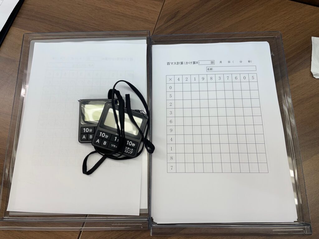 こちらの教室では特に「100マス計算」強いのです。誰が上位に名前を連ねるか楽しみにしています。