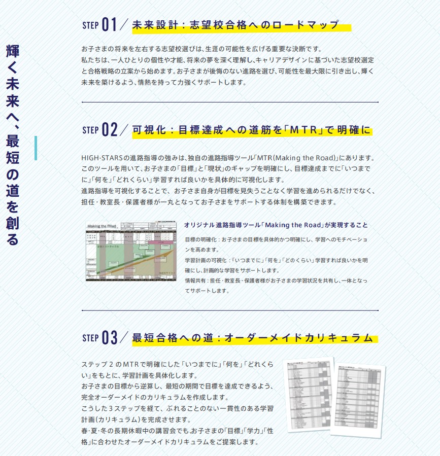 HIGH-STARS個別指導学院で実践しているのは、HIGH-STARS独自の「ハイスタメソッド」による逆算カリキュラムです