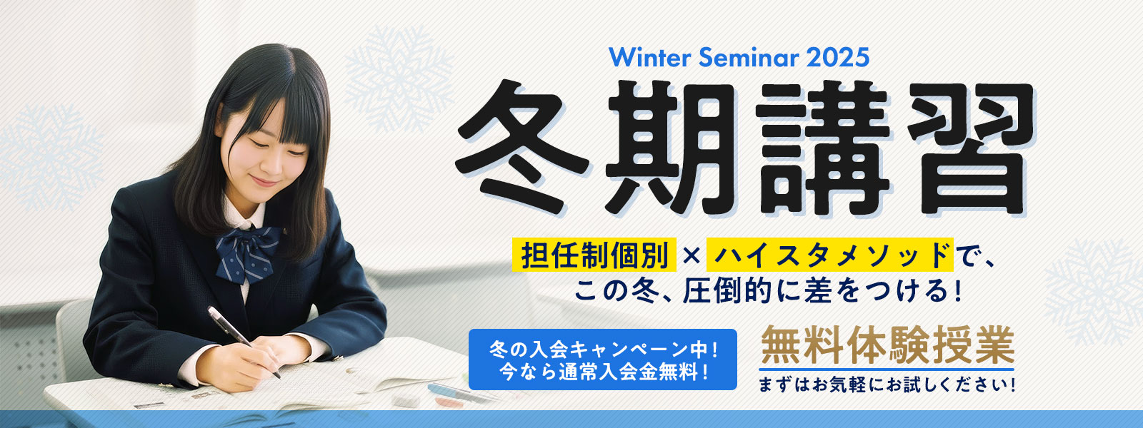 ハイスタの冬期講習なら、お子様だけのオリジナルカリキュラムで成績アップを目指せます!